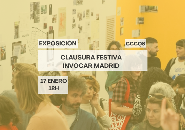 Clausura festiva invocar Madrid Visionado y conversación Ellas en la ciudad - Reyes Gallegos Entre el hormigón y las pipas: una conversación con Aida dos Santos y Esther L Calderon CAPSULAS TANDEM - LANZARSE A LA DERIVA Cine de andada CONVOCATORIA MEDIACIÓN EN RESIDENCIA Exposicion Alteridades poéticas & Subversiones identitarias exposición Invocar Madrid La Liminal grupo de investigación SICK mediación en residencia -(Fu)Turismos – Ecologías del agotamiento ciclo masculinidades subalternas TANDEM 10